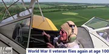 Donald Muncy is a 100-year-old Navy veteran airman living in Ohio. He got to fly again Tuesday, waving before a crow of 100 people, per Fox News.