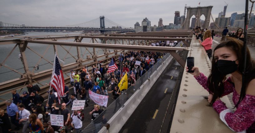 Approximately 5,000 protesters marched across the historic Brooklyn Bridge to protest the vaccine mandate, the New York Post reported. Many of them were unvaccinated NYC employees, including police officers and firefighters.