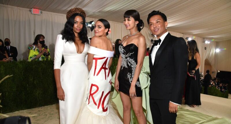 “AOC took this opportunity to display a tone-deaf ‘tax the rich’ slogan on her custom-made designer gown while rubbing elbows with wealthy Hollywood celebrities and influencers — a group not selected by the Met, but handpicked by Anna Wintour and Conde Nast,” the organization said.