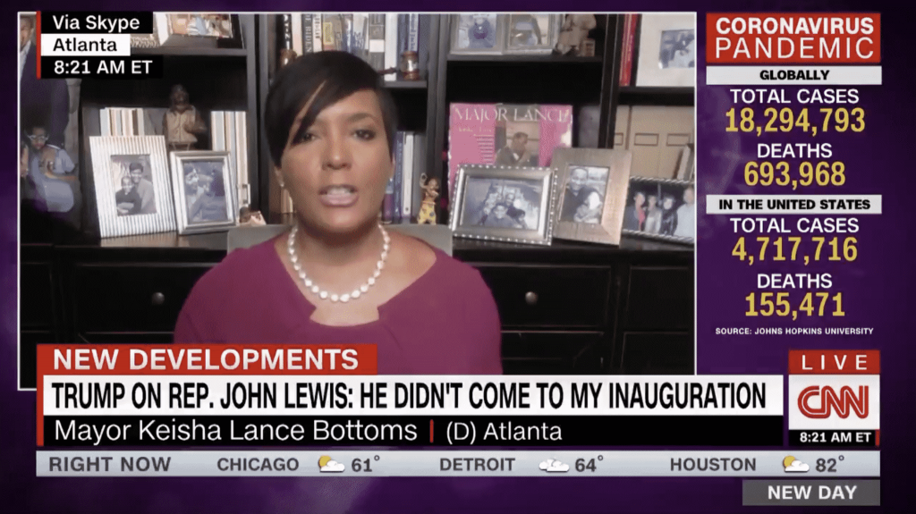 Atlanta Mayor Keisha Lance Bottoms calls Trump a "narcissist" and "delusional" after his comments on John Lewis: "He doesn't care anything about the American people, he doesn't care anything about the history of this country" https://t.co/KGsltPYyk1 pic.twitter.com/2QkxeYvv6h