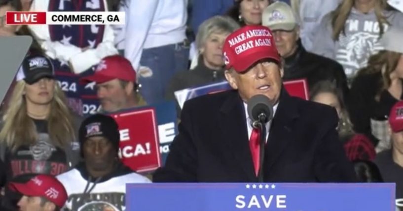 In a speech in Commerce, Georgia, on Saturday, Trump mocked the priorities of President Joe Biden’s administration — particularly climate czar John Kerry, whose concerns regarding the escalating conflict in Eastern Europe seem to be centered, as Trump noted, on whether “the ocean will rise one one-hundredth of 1 percent over the next 300 f***ing years.”