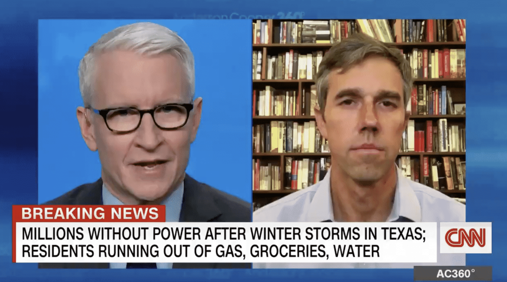 CNN’S Anderson Cooper noted Abbott is defending his comments and arguing if Texas depended solely on green energy, it would be a challenge. He asked O’Rourke if Abbott’s claims made sense to him.