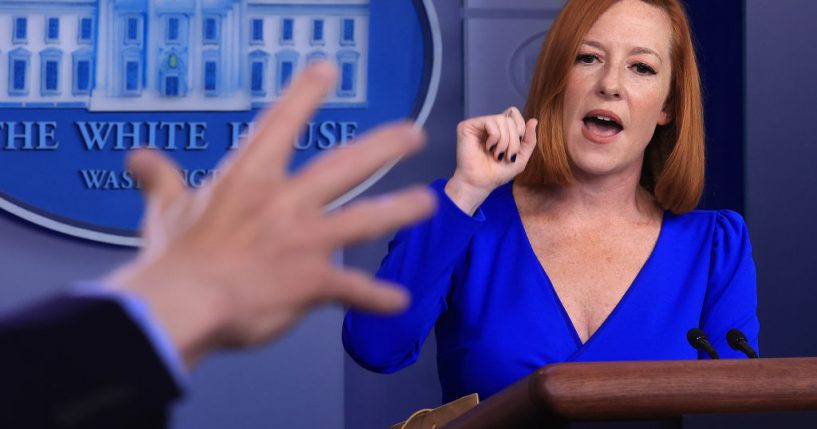 Fox News reporter Peter Doocy, the only White House pool reporter interested in asking questions about things other than ice cream, held Psaki’s feet to the fire over Biden’s false labeling of Rittenhouse as a deplorable racist last year.