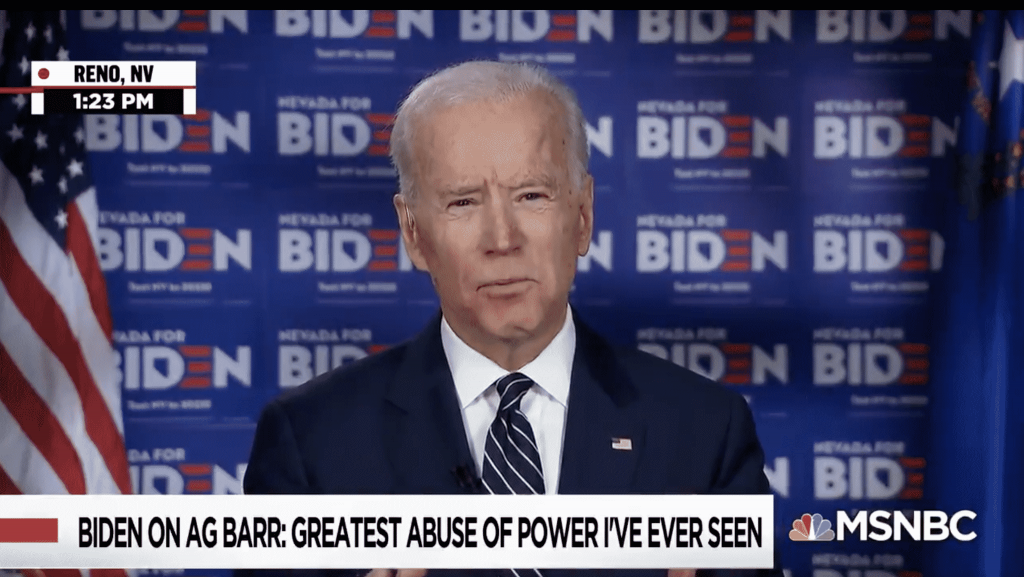 Biden’s comments come after more than 1,000 former Justice Department officials called for Barr to resign over his decision to seek a lighter sentence for Stone.