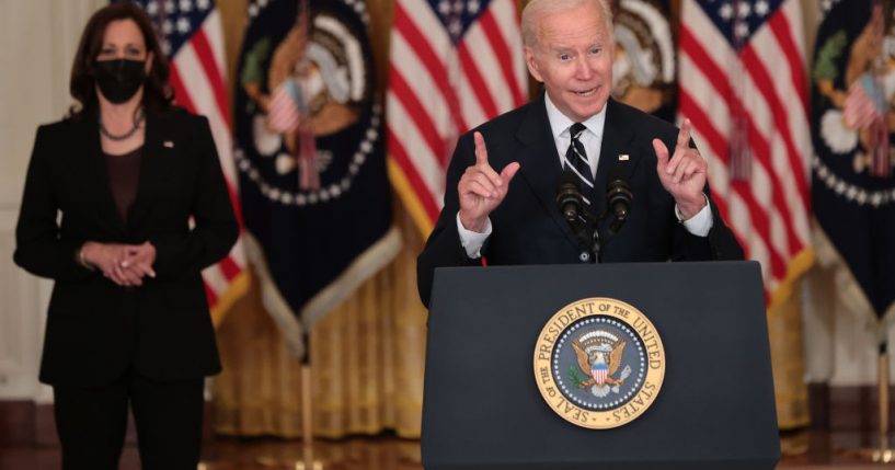 Biden claimed the framework he announced today will win support from all 50 Democrats needed for the package to pass the chamber.