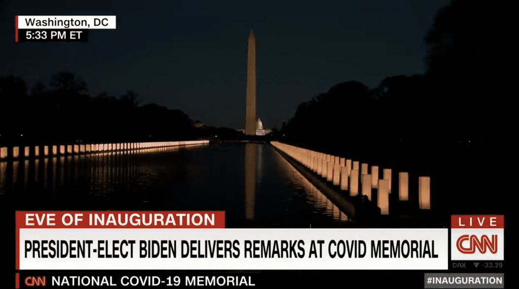 President-elect Joe Biden paid tribute to the more than 400,000 people in the US who have died from Covid-19, during a memorial held by the Lincoln Memorial's reflecting pool. https://t.co/ZIvhVp5yQO pic.twitter.com/fcAV0eJLIW
