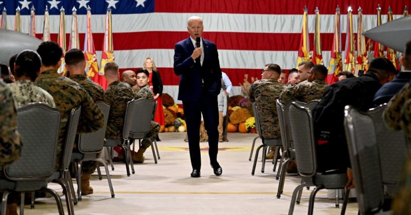 President Joe Biden offered words of gratitude to U.S. service members on Thanksgiving.