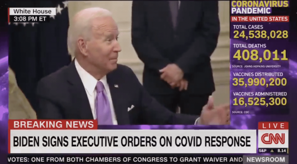 As he was signing executive orders in efforts to combat the COVID-19 pandemic, a reporter pressed Biden on whether his goal is enough to save the lives of Americans.