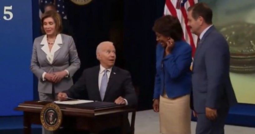 The comments took place as Biden signed a bill alongside House Speaker Nancy Pelosi, Illinois Democratic Rep. Jesus “Chuy” Garcia and Waters.