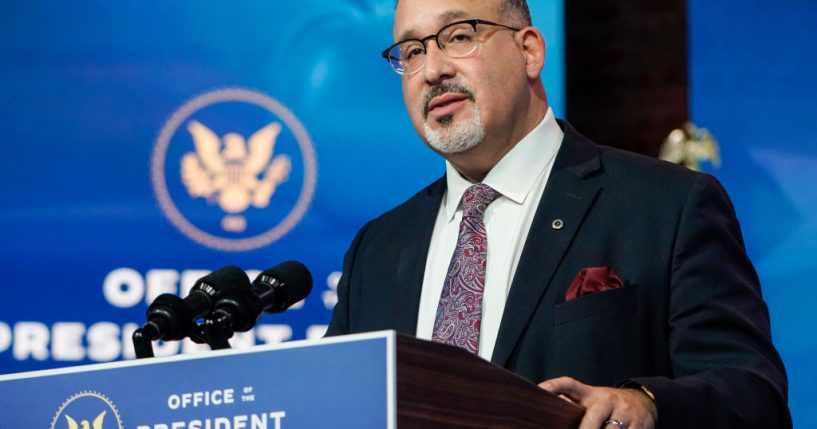 The group Parents Defending Education obtained emails between NSBA board members Marnie Maraldo and Kristi Swett in which the latter said the letter was written “from a request” by Secretary Miguel Cardona.