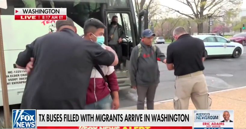 “Fox & Friends” aired footage of migrants disembarking from a bus in the nation’s capital on Wednesday, just blocks away from the U.S. Capitol building.