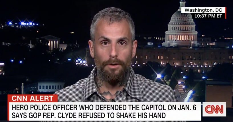 When asked what happened when he introduced himself to Clyde, Fanone responded, “I greeted Congressman Clyde. I was very cordial. I extended my hand to shake his hand. He just stared at me. I asked him if he was going to shake my hand and he told me that he didn’t know who I was.”
