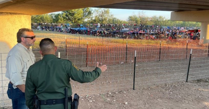 He was referring to footage shared by Fox News correspondent Bill Melugin showing crowds of migrants gathering under the Del Rio International Bridge.
