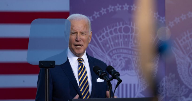 ATLANTA, GA - JANUARY 11: U.S. President Joe Biden speaks to a crowd at the Atlanta University Center Consortium, part of both Morehouse College and Clark Atlanta University on January 11, 2022 in Atlanta, Georgia. Biden and Vice President Kamala Harris delivered remarks on voting rights legislation. Georgia has been a focus point for voting legislation after the state voted Democratic for the first time in almost 30 years in the 2020 election. As a result, the Georgia House passed House Bill 531 to limit voting hours, drop boxes, and require a government ID when voting by mail. (Photo by Megan Varner/Getty Images)