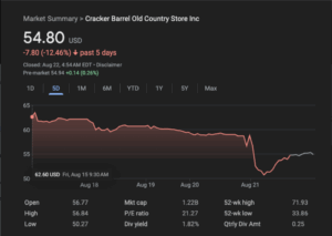GO WOKE, GO BROKE: Cracker Barrel CEO Julie Felss Masino’s decision to ‘decolonize’ the company starting by removing the old-fashioned country gentleman meant to evoke nostalgia and Americana from the logo is hammering the stock wiping out $250 million in value. Since Felss… pic.twitter.com/CX7YHFCwAS