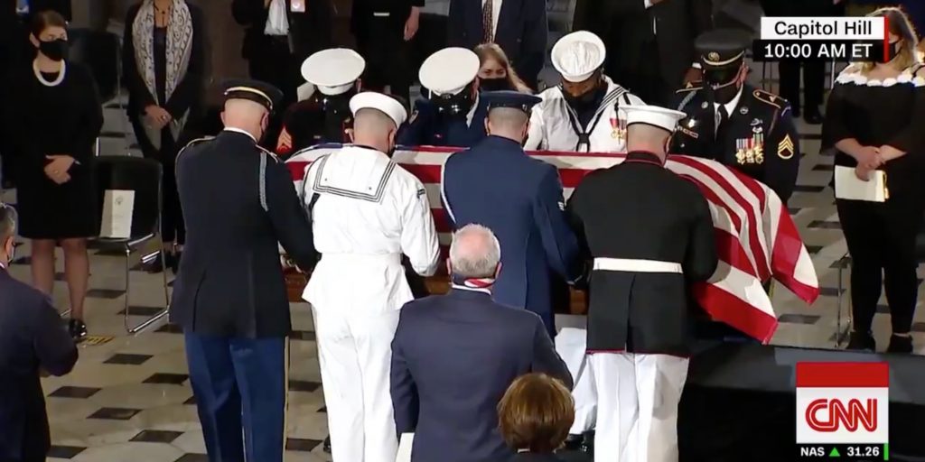 Ginsburg’s flag-cloaked casket was carried into the Capitol on Friday morning.