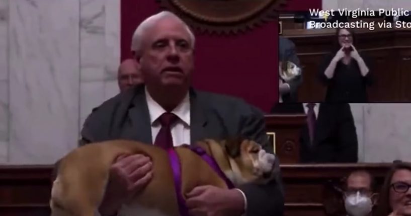 Gov. Jim Justice (R-W. Va.) brought along his dog to respond to critics during his State of the State address.