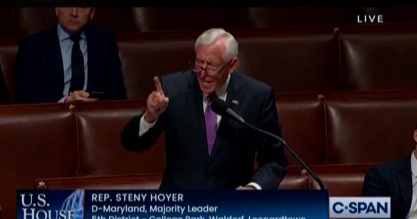 During a speech on the House floor, Hoyer asked, “What happened on Jan. 6? What was the insurrection about? What were people coming into the Capitol saying, ‘Let’s hang the vice president of the United States? Not of our party.”