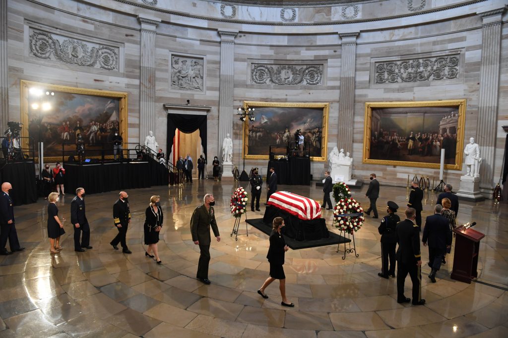 The congressional arrival ceremony was held in the historic Rotunda of the Capitol. Former Vice President Joe Biden, running to unseat President Donald Trump in November’s elections, was expected to pay his respects later in the day.