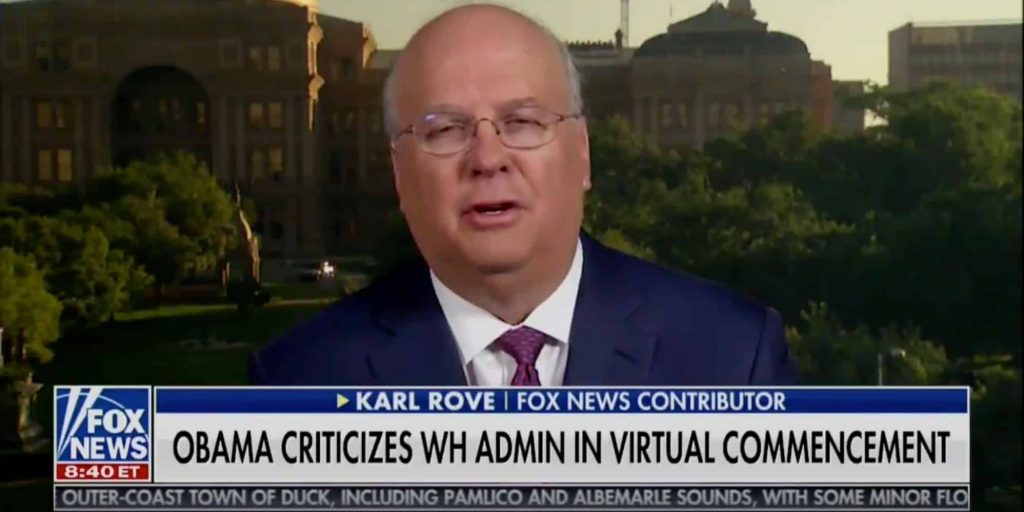 "It is so unseemly for a former president to take the virtual commencement ceremony for a series of historically black colleges and universities and turn it into a political drive-by shooting" — Karl Rove on Obama's commencement speech in which he indirectly criticized Trump pic.twitter.com/stZamQFhgF