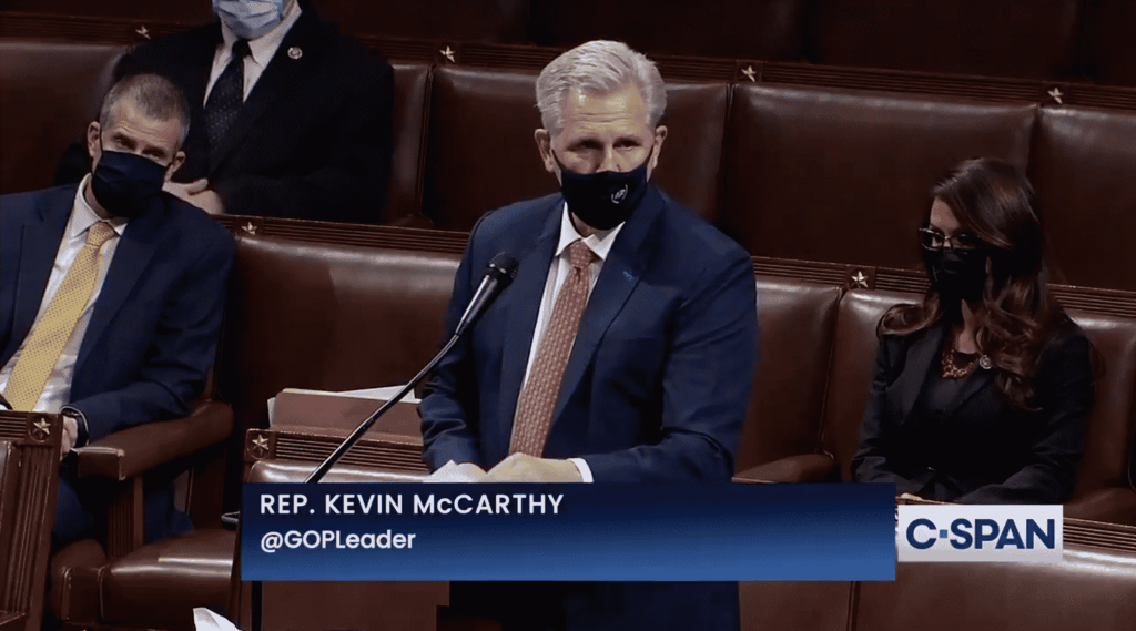 During his speech, McCarthy called on Trump to “accept his share of responsibility, quell the grueling unrest, and ensure President-elect Biden is able to successfully begin his term.”