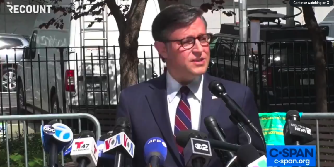 — House Speaker Mike Johnson speaks outside Trump's hush money trial in New York pic.twitter.com/TlKNpBmlAK
