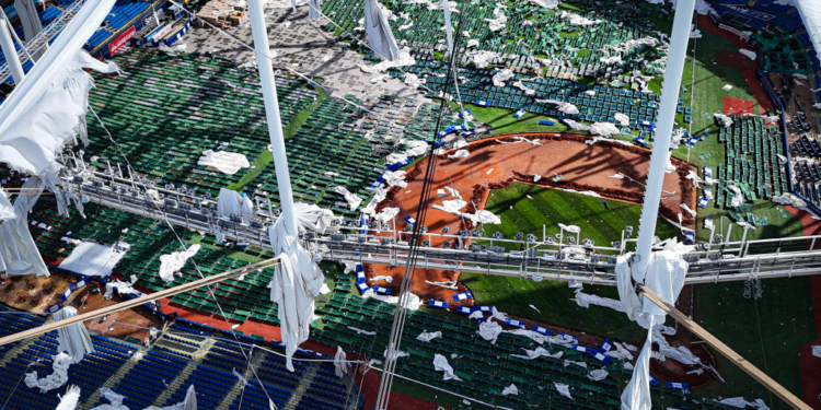 The stadium is the home ballpark for the Tampa Bay Rays. The roof was destroyed as the Category 3 hurricane made landfall, Mediaite reported.