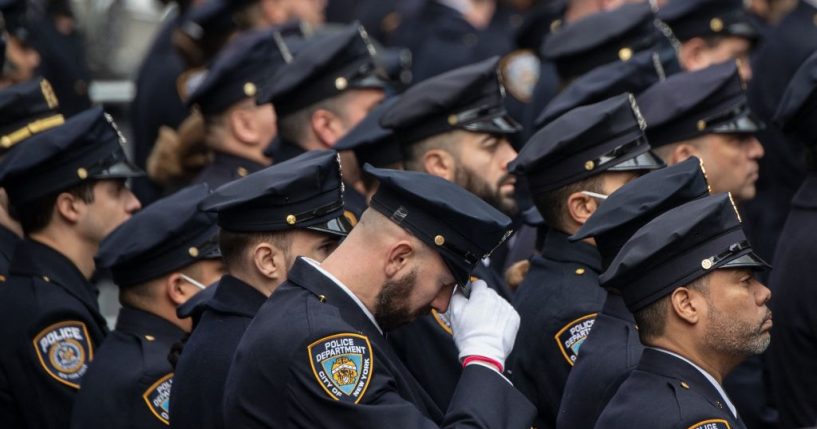 During Rivera’s funeral at St. Patrick’s Cathedral, thousands of police officers crowded the closed streets to pay their respects. Plenty of citizens were among the sea of blue.