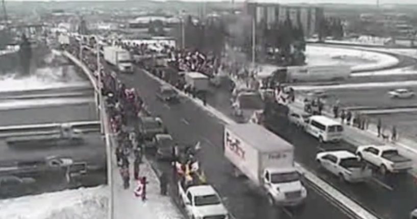 By Thursday, traffic cameras in Ontario, Canada, showed supporters gathering to support the Freedom Convoy.
