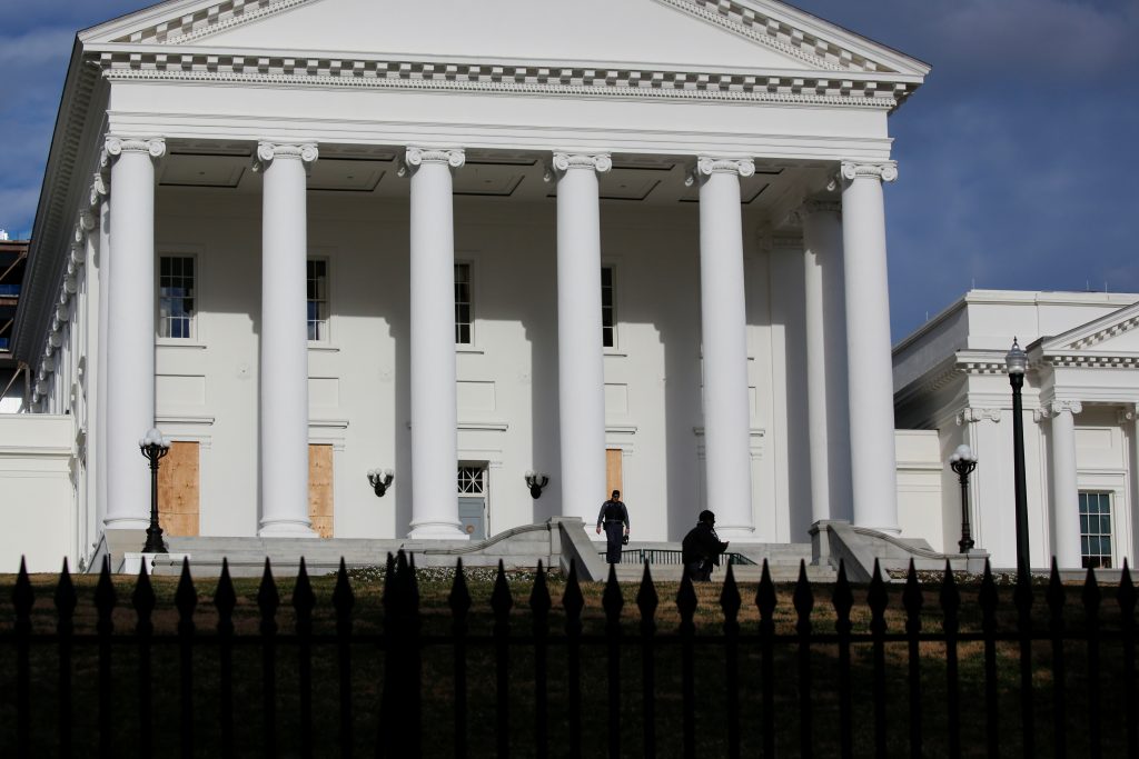 “We’re showing up to remind them that we’re still here,” a gun rights activist, who identified himself only as Trevor, told Reuters outside the Virginia statehouse on Sunday evening, walking the perimeter to help plan the protest.