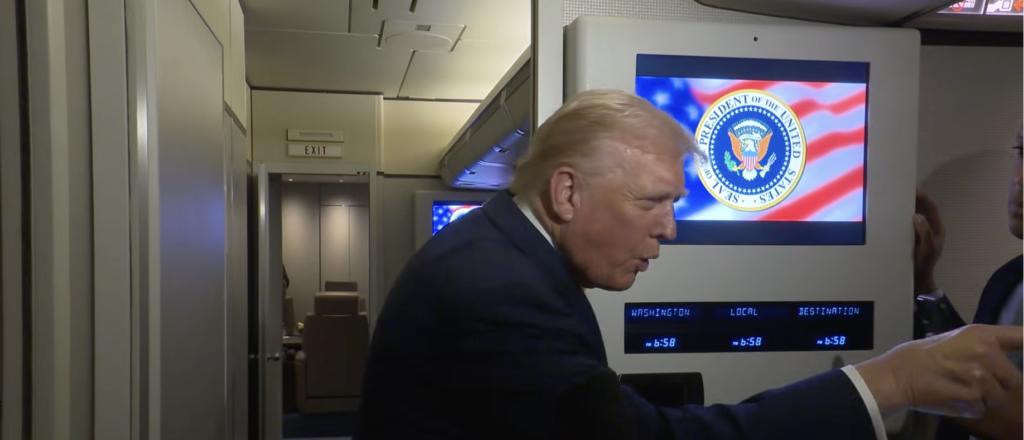 President Donald Trump snapped at Bloomberg reporter Catherine Lucey when she pressed him about the files surrounding sex offender Jeffrey Epstein in resurfaced video from Friday while aboard Air Force One.