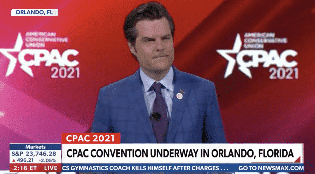 Rep. Matt Gaetz (R-Fla.) is suggesting Rep. Liz Cheney (R-Wyo.) would get “booed” off the stage at the Conservative Political Action Conference (CPAC).