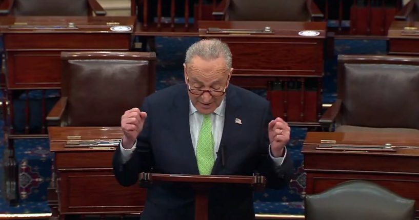 During a speech on the Senate floor on Thursday, Schumer said, “I want my colleagues to be aware of the number 29%. That’s the percentage of Republicans who believe that President Trump will ‘be reinstated’ as president later this summer.”