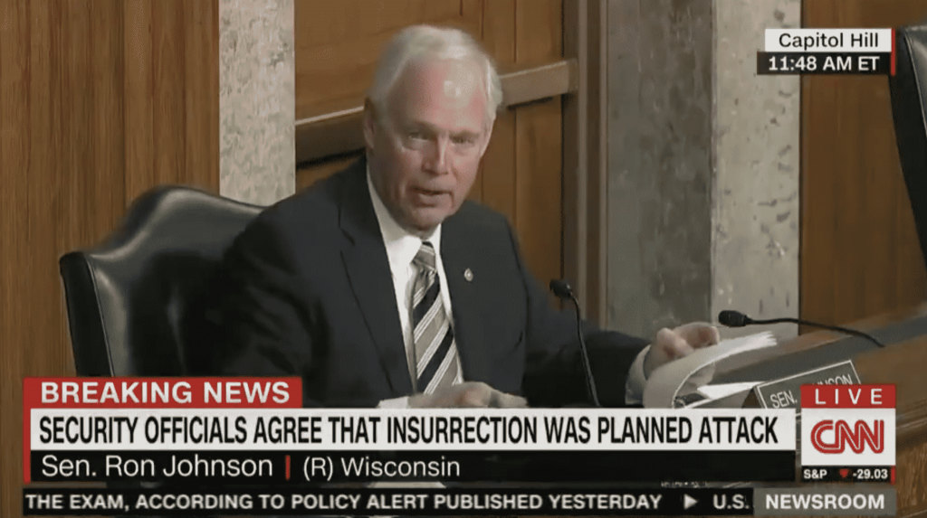 Sen. Ron Johnson (R-Wisc.) spent time during a Senate hearing focused on the Jan. 6 riots at the U.S. Capitol, raising concerns about alleged claims