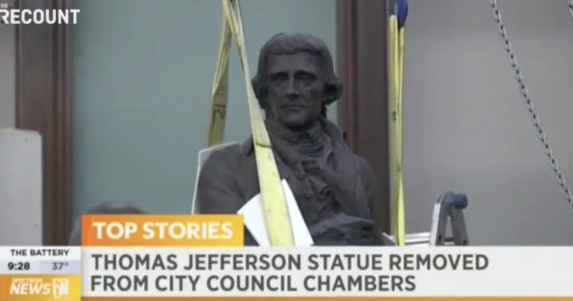 Thompson explained, “Moving this statue doesn’t mean New Yorkers will forget who Thomas Jefferson was — but some of them might learn from the controversy that the man who wrote ‘all men are created equal’ owned over 600 of his fellow humans.”