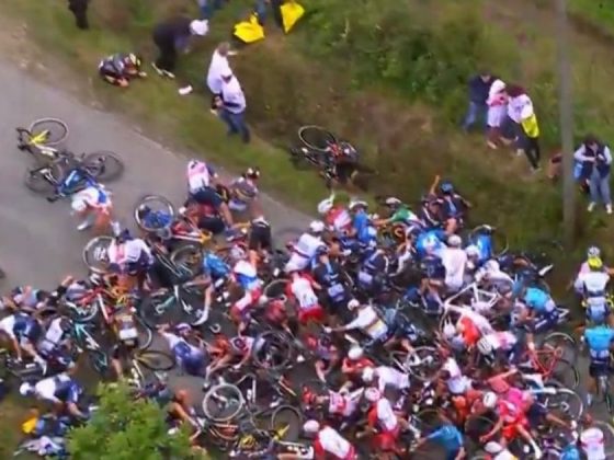 Chaos reigned at the Tour de France Saturday after a fan holding a sign triggered a massive crash at the world-famous bicycle race. The incident took place along the first ...