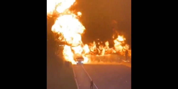 🚨#BREAKING: Emergency personnel’s are on the scene after a petroleum tanker truck had crashed during an accident causing a massive fire and explosion