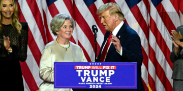 “Let me also express my tremendous appreciation for Susie [Wiles] and Chris [LaCivita], on the job you did. Susie, come, Susie,” Trump said. “Susie likes to stay sort of in the back, let me tell you. The ice baby. We call her the ice baby. Susie likes to stay in the background. She’s not in the background.”