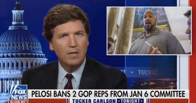 Fox News host Tucker Carlson claims a Black Capitol Police Officer who was attacked on January 6 at the U.S. Capitol is an “angry left-wing political activist.”