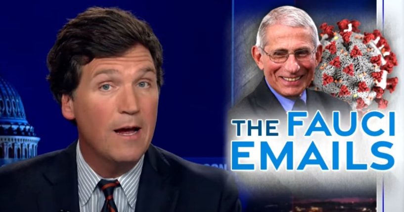 “Two days after he said that, one of the virologists that Tony Fauci had funded to conduct dangerous coronavirus experiments in Wuhan wrote to thank him for the help,” Carlson said. “That man, a man called Peter Daszak, complained to Fauci that the American tax dollars he’d taken for these experiments were being ‘publicly targeted by Fox News reporters.’