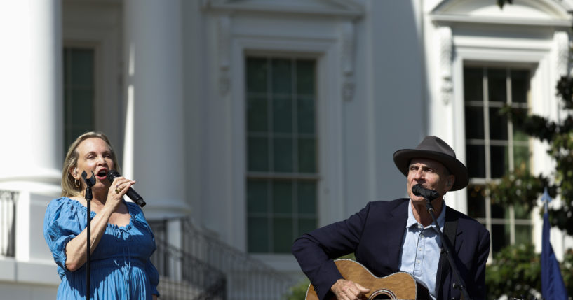 Biden's White House event celebrating the "Inflation Reduction Act" is beginning with a performance by James Taylor of "Fire and Rain" pic.twitter.com/CeVECkldOR