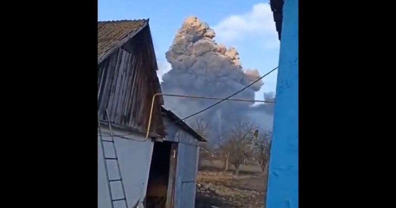 According to #Ukrainian media reports, the video allegedly shows the #Russian army dropping a vacuum bomb.