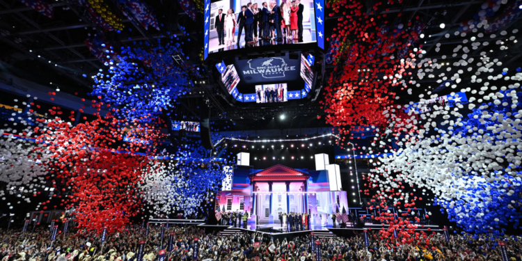 The upbeat mood at the convention comes as RealClearPolitics’ average of polls shows Trump leading by three points nationally, and he is leading in seven key battleground states.