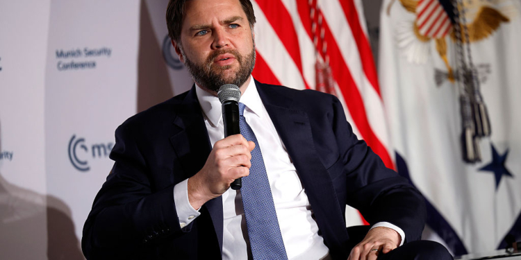 WASHINGTON, DC - MAY 07: U.S. Vice President JD Vance delivers remarks to the Munich Leaders Meeting, hosted by the Munich Security Conference, at the Willard Hotel on May 07, 2025 in Washington, DC. The meeting brings together European and American leaders for a discussion on current security challenges and to strengthen transatlantic partnerships, focusing on defense, economics, and regional security. (Photo by Kevin Dietsch/Getty Images)