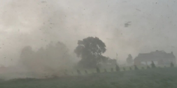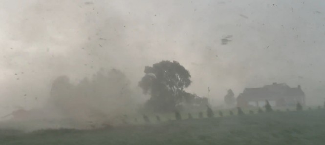 In the video, the tornado can be seen ripping through powerlines before moving across an open field and directly hitting Timmer’s vehicle.
