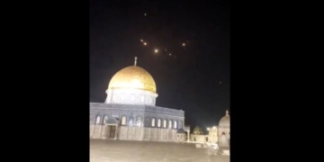 Surreal footage of the Iranian attack over Jerusalem’s Temple Mount/Haram al-Sharif pic.twitter.com/NuSvF25HLX