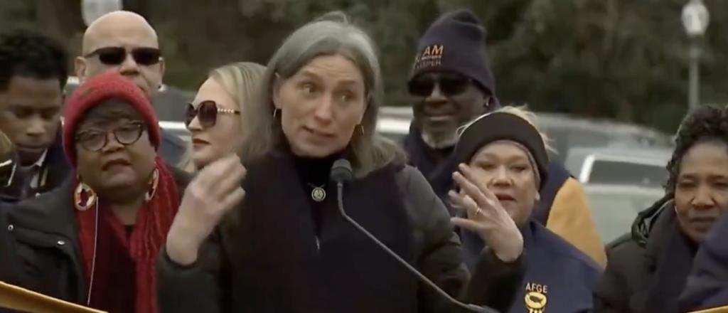 The American Federation of Government Employees gathered Monday on Capitol Hill and rallied “to save the civil service” and oppose Trump’s push to reduce the size of the federal government’s workforce. Trump has been working with the Department of Government Efficiency’s Elon Musk, whose task is to clean up government waste. While speaking to protesters, Dexter was seen at the podium, calling out Trump and teasing her supporters to not “tell her children” she had made a certain statement.