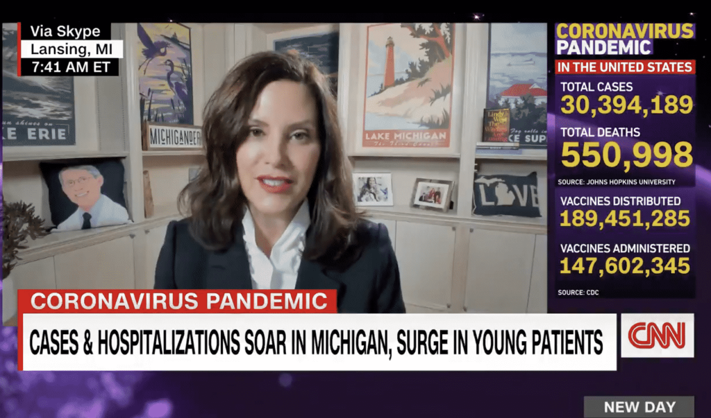 Michigan is seeing a sharp rise in cases after the state began loosening restrictions.@GovWhitmer: “We're going gangbusters on the vaccines and that's where people need to have their personal responsibility — following the protocol and getting themselves vaccinated.” pic.twitter.com/GMpkAQ3KxJ